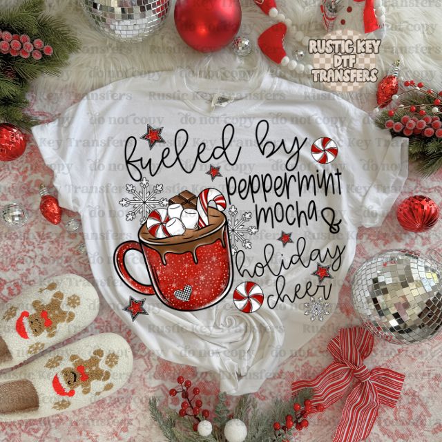 Fueled by peppermint mocha DTF Transfer, Ready to Press