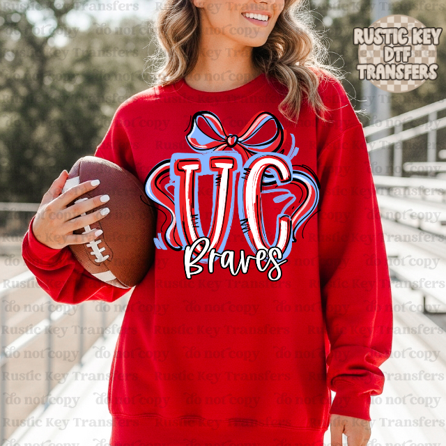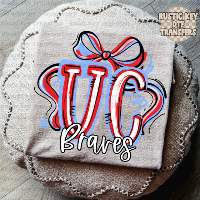 Union County Braves DTF Transfer, Ready to Press Show your school pride with this high-quality direct-to-film transfer featuring the iconic Union Braves branding. Designed for seamless application onto apparel, this ready-to-press transfer delivers vibrant colors and crisp detail that withstand repeated washing. Perfect for creating custom team jerseys, spirit wear, and fan merchandise. Simply heat press onto your garment following standard DTF application guidelines for professional results every time. Ideal for boosters, athletes, and supporters looking to celebrate their Braves legacy.