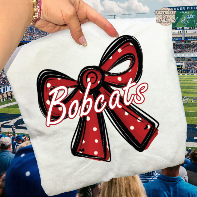 Bobcats red polka dot bow DTF Transfer, Ready to Press