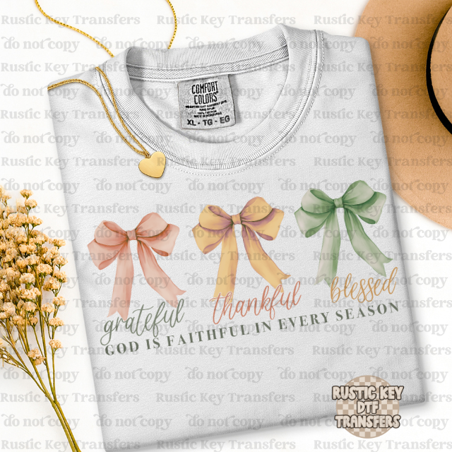 Grateful, Thankful, Blessed DTF Transfer, Ready to Press