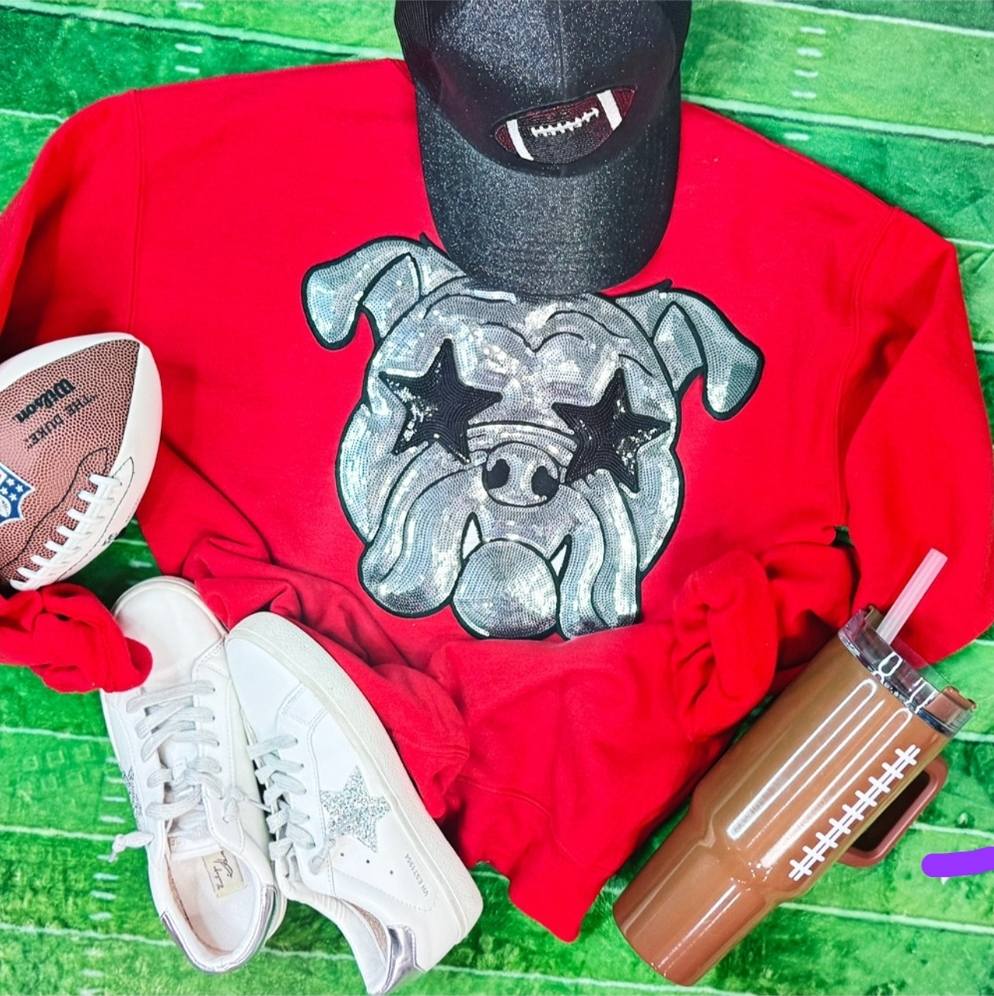 Grey Bulldog with starry eyes Sequin Patch
