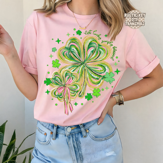 Brushed shamrock not lucky simply blessed DTF Transfer, Ready to Press