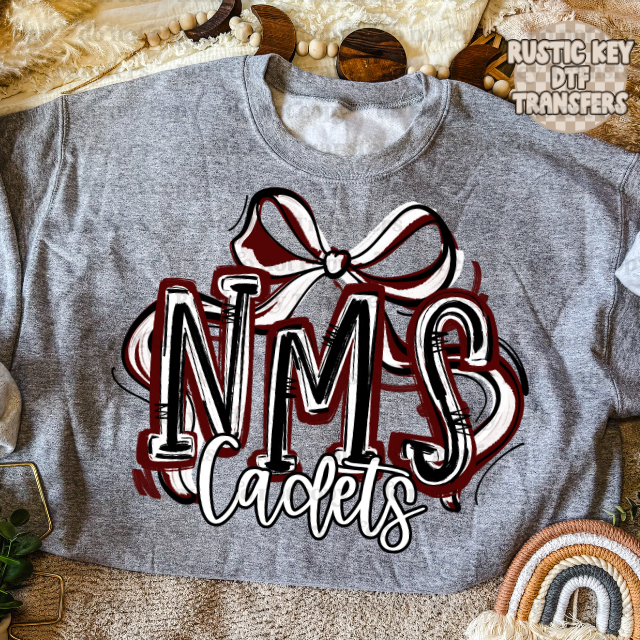 North Cadets DTF Transfer, Ready to Press Showcase your school pride with this professionally designed DTF transfer featuring the North Cadets ribbon bow emblem. Pre-printed and ready to apply, this transfer delivers vibrant, long-lasting color directly onto apparel without additional setup. Perfect for spirit wear, uniforms, or fan merchandise, the design captures the essence of North Cadets tradition with crisp detail and durability. Simply heat press onto your garment for instant, professional results that withstand repeated washing and wear.