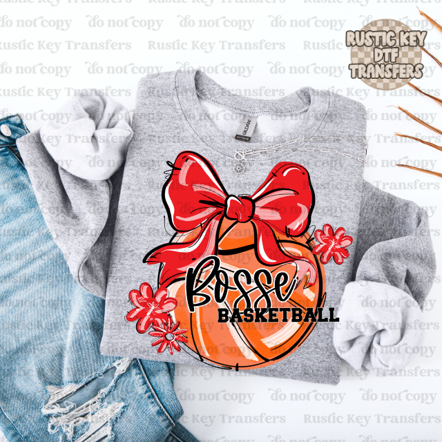Bosse Basketball bow DTF Transfer, Ready to Press