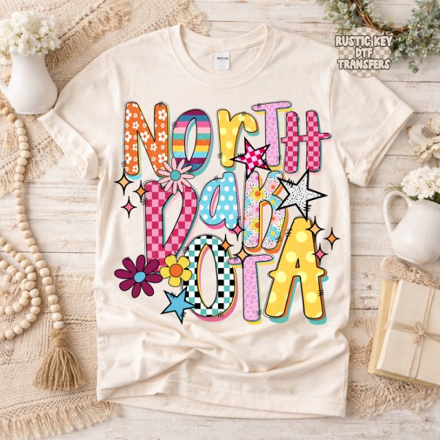North Dakota Funky Fresh state DTF Transfer, Ready to Press